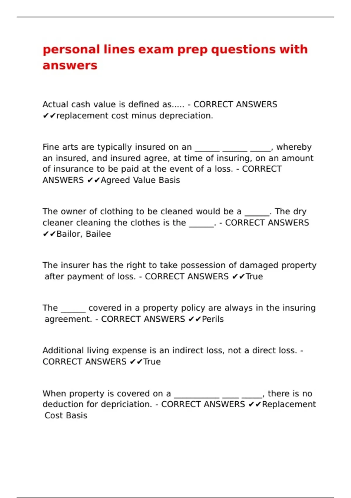 personal lines exam prep questions with answers