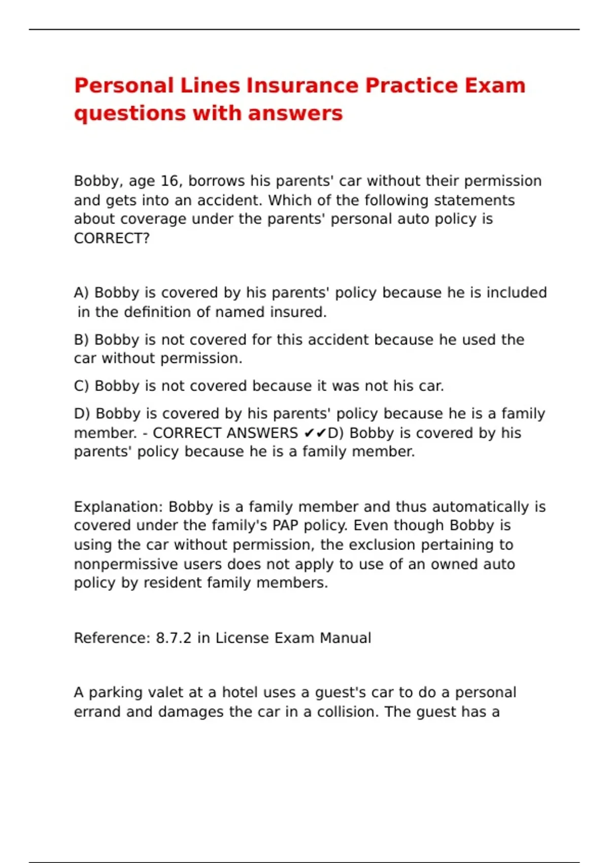 member. - CORRECT ANSWERS ✔✔D) Bobby is covered by his