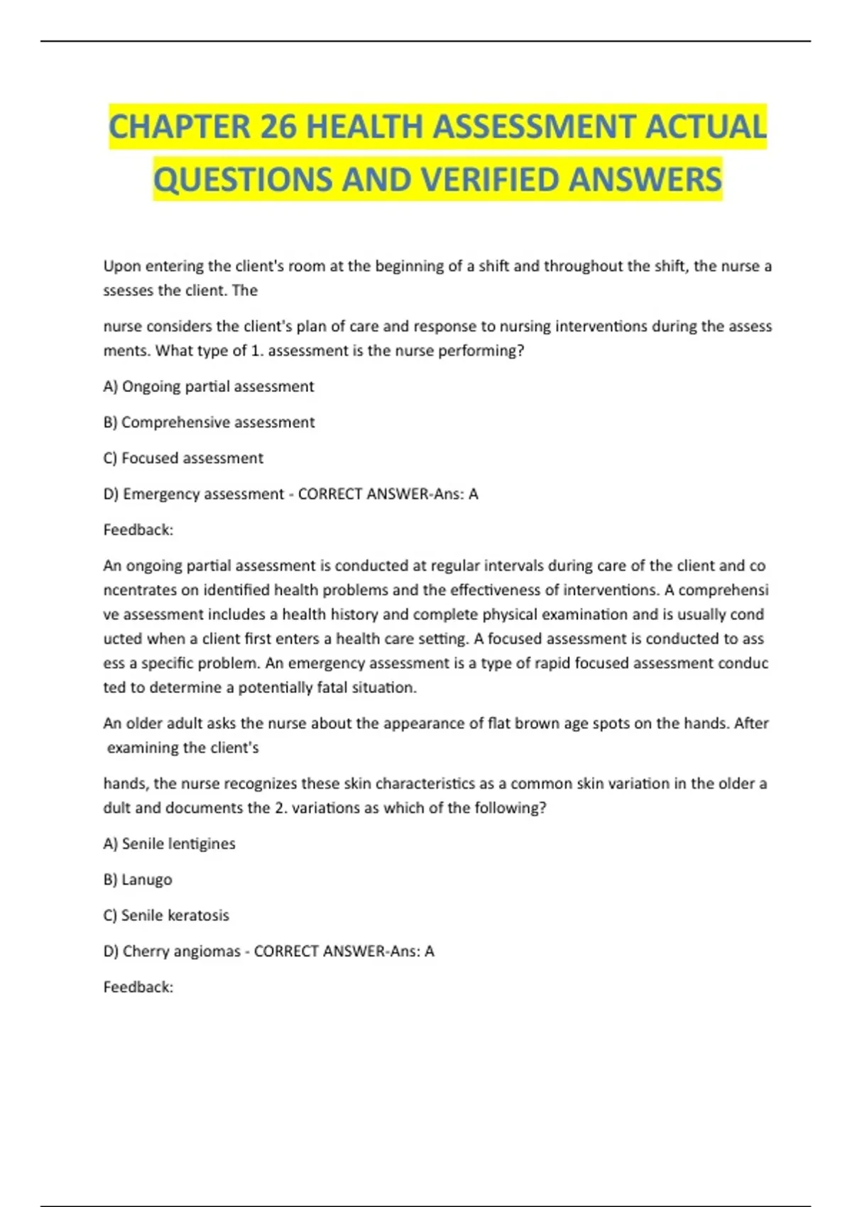 Chapter 26 – Health Assessment: Actual Questions and Verified Answers (Complete Study Material)
