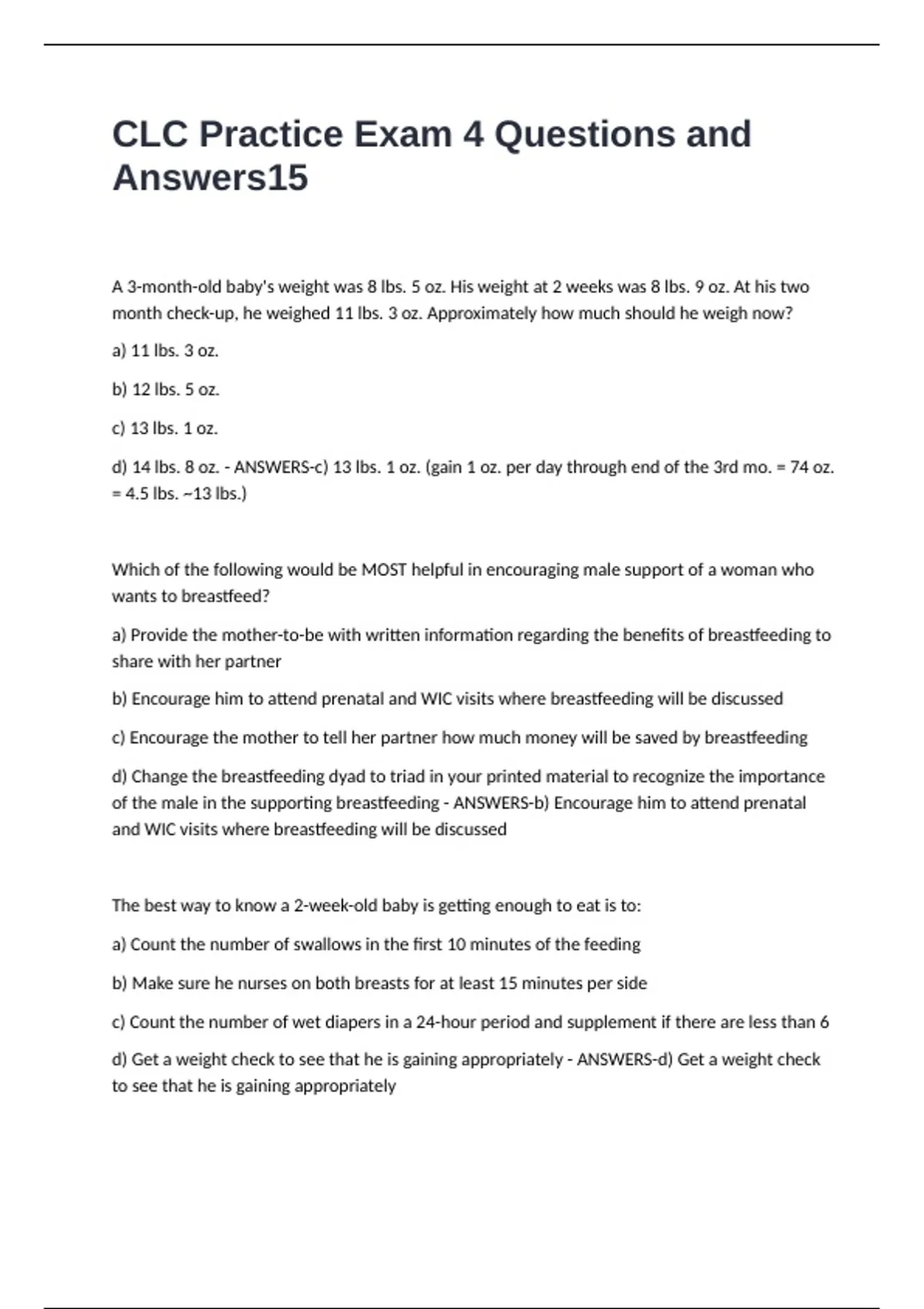 d) 14 lbs. 8 oz. - ANSWERS-c) 13 lbs. 1 oz. (gain 1 oz. per day through end of the 3rd mo. = 74 oz.