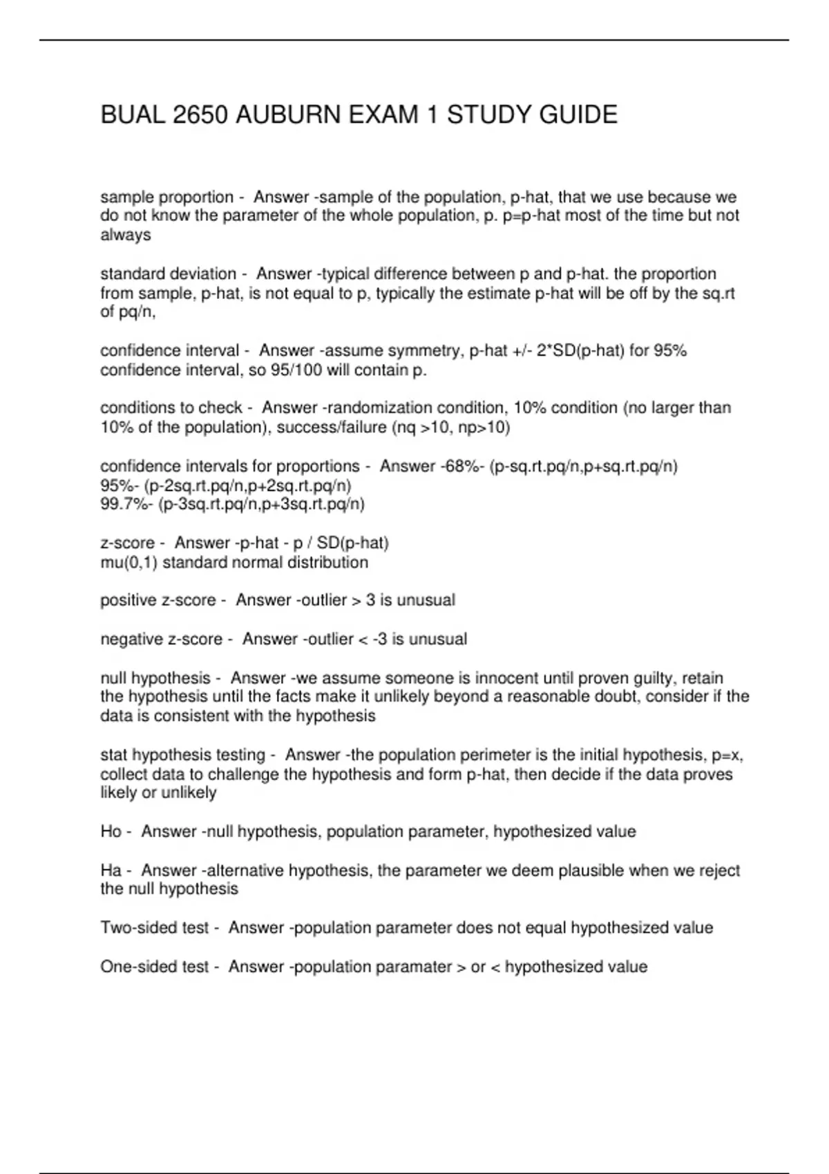 BUAL 2650 AUBURN EXAM 1 STUDY GUIDE