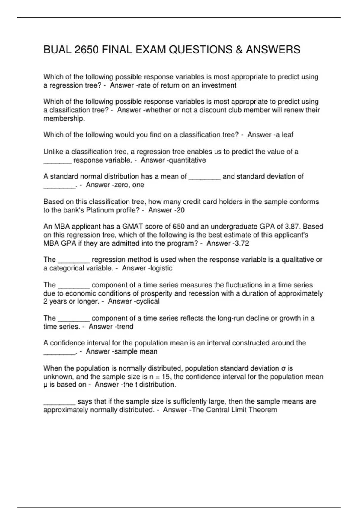 BUAL 2650 FINAL EXAM QUESTIONS & ANSWERS