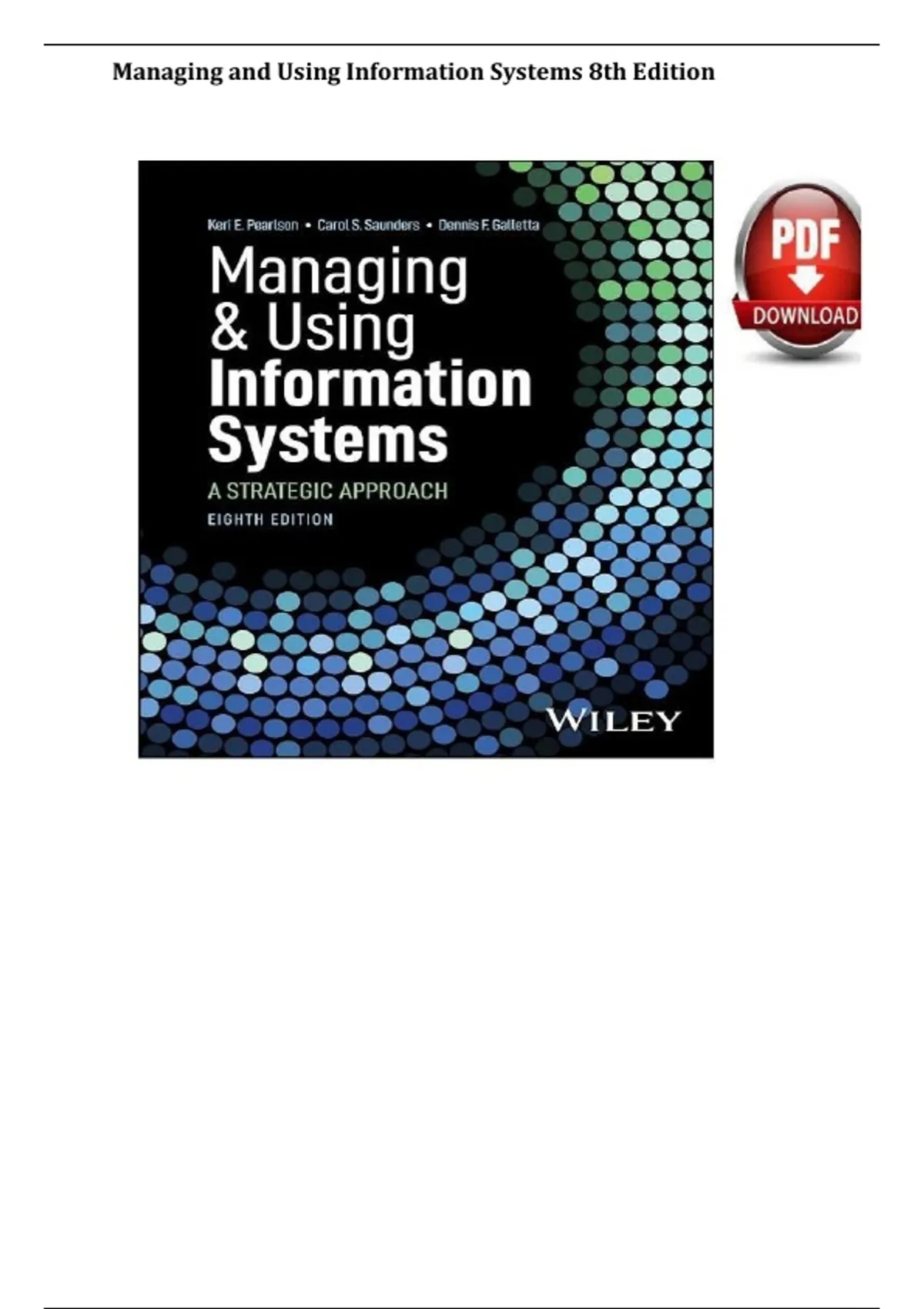 Managing and Using Information Systems 8th Edition by Keri E. Pearlson, Carol S. Saunders, and Dennis F. Galletta Complete All Chapters 1-13! ALREADY RATED A+ 100% CORRECT ANSWERS
