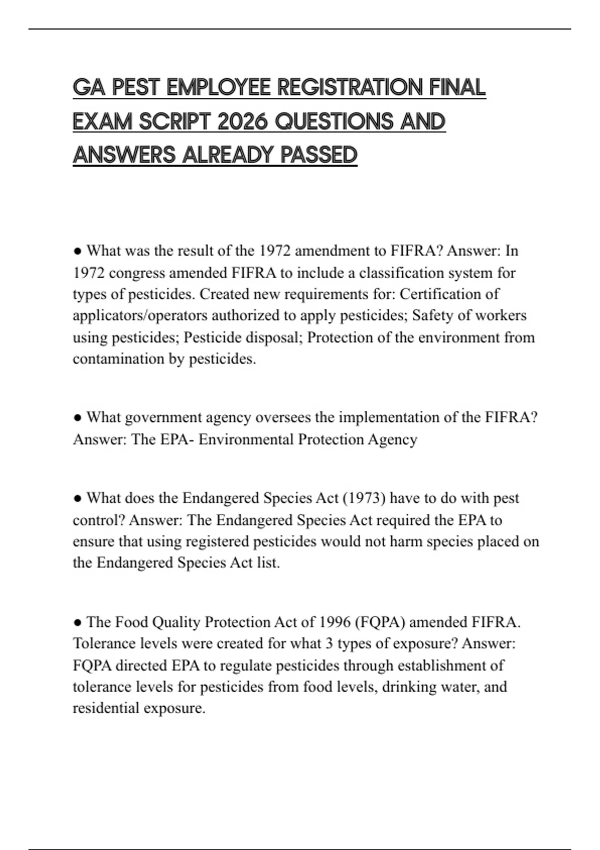 ● What was the result of the 1972 amendment to FIFRA? Answer: In
