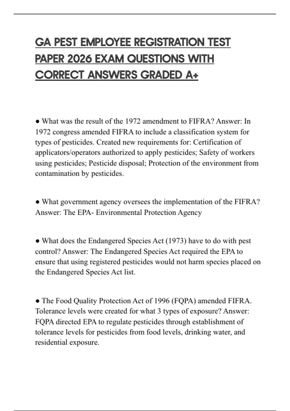 ● What was the result of the 1972 amendment to FIFRA? Answer: In