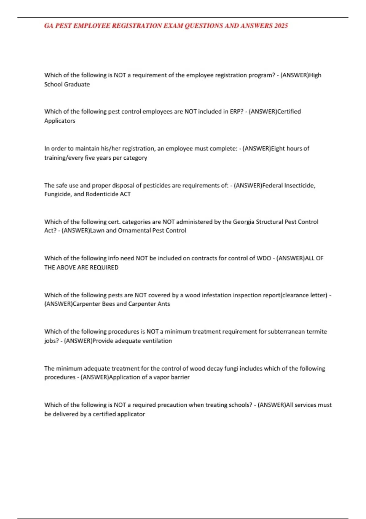 , GA PEST EMPLOYEE REGISTRATION EXAM QUESTIONS AND ANSWERS 2025