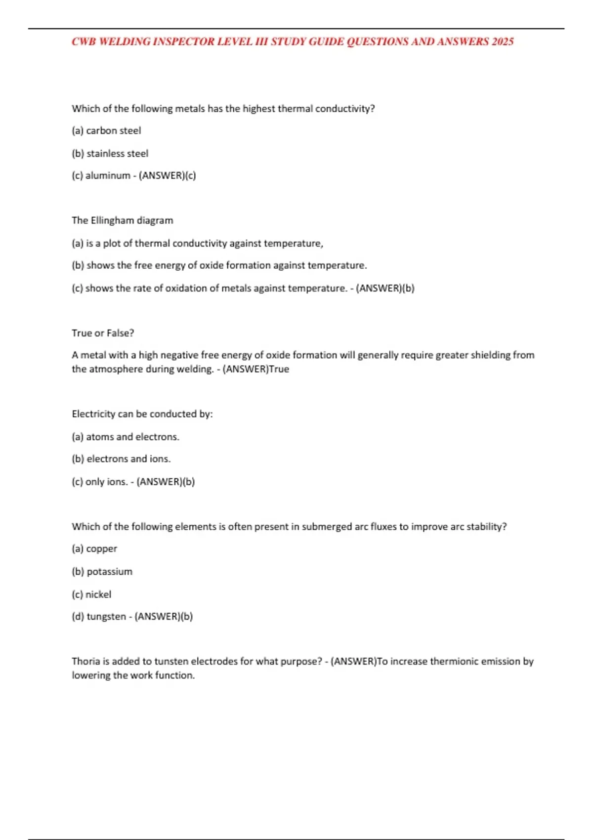 , CWB WELDING INSPECTOR LEVEL III STUDY GUIDE QUESTIONS AND ANSWERS 2025