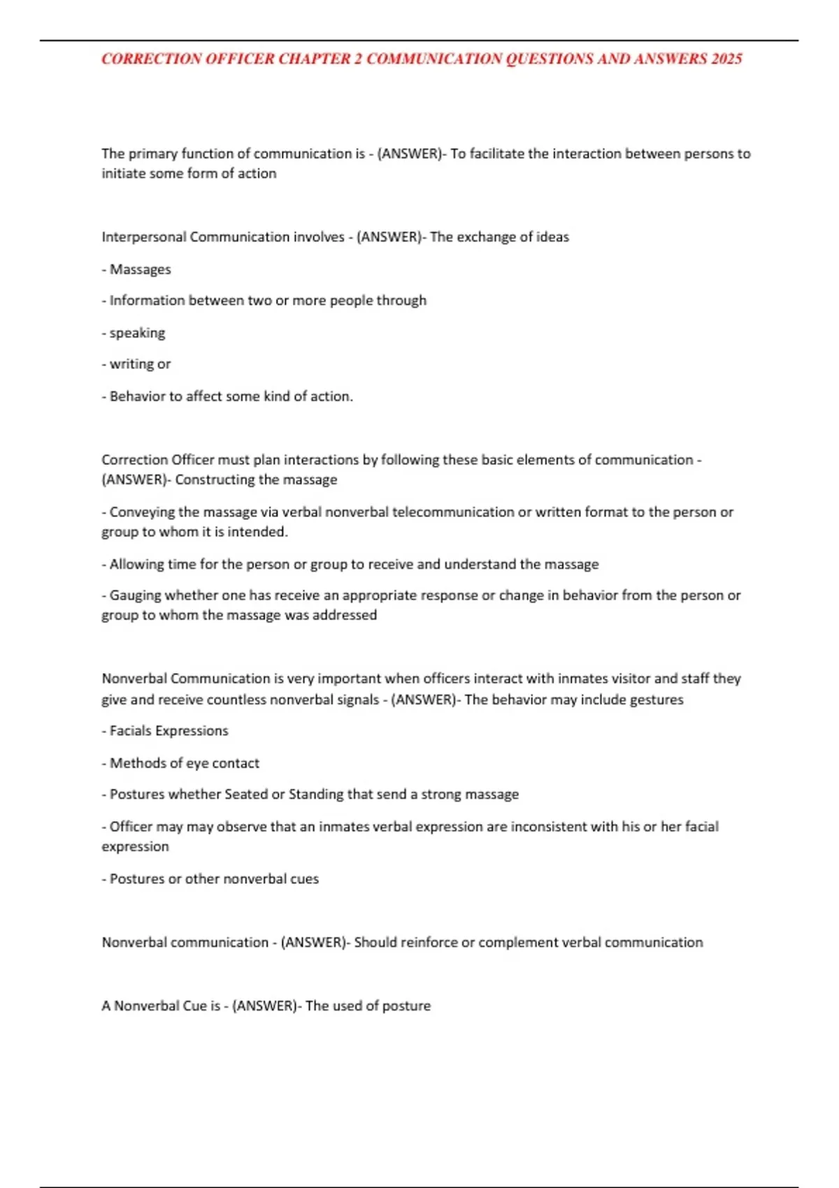 , CORRECTION OFFICER CHAPTER 2 COMMUNICATION QUESTIONS AND ANSWERS 2025