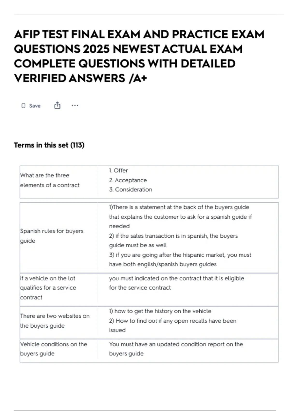 AFIP TEST FINAL EXAM AND PRACTICE EXAM QUESTIONS 2025 NEWEST ACTUAL EXAM COMPLETE QUESTIONS WITH DETAILED VERIFIED ANSWERS /A+