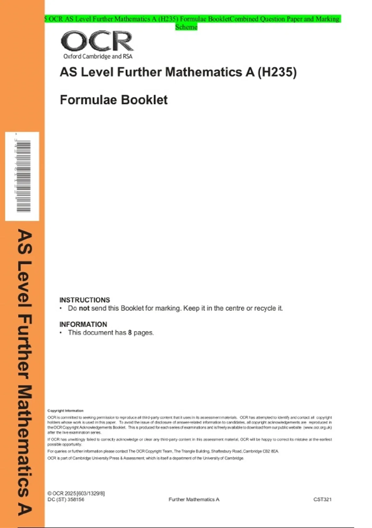 025 OCR AS Level Further Mathematics A (H235) Formulae BookletCombined Question Paper and Marking Scheme