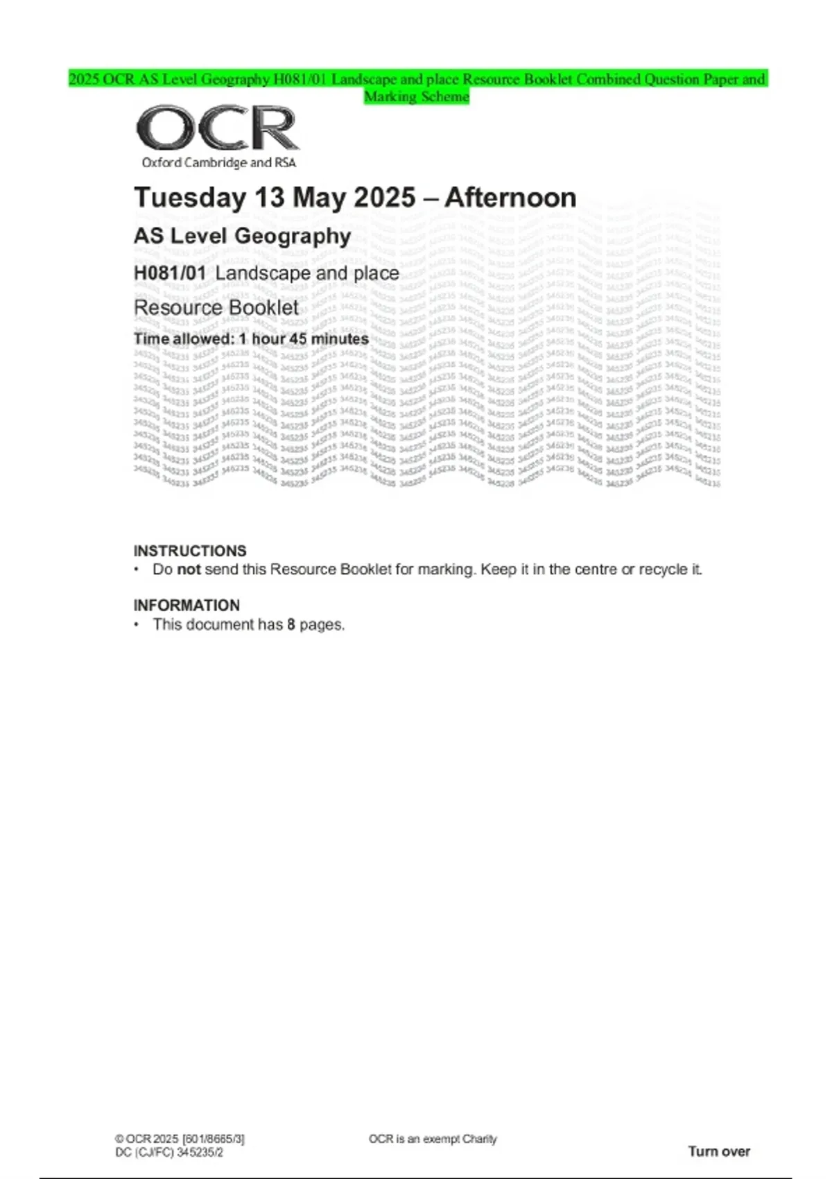 2025 OCR AS Level Geography H081/01 Landscape and place Resource Booklet Combined Question Paper and Marking Scheme