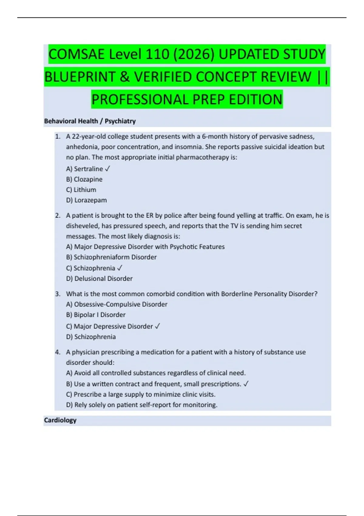 1. A 22-year-old college student presents with a 6-month history of pervasive sadness,