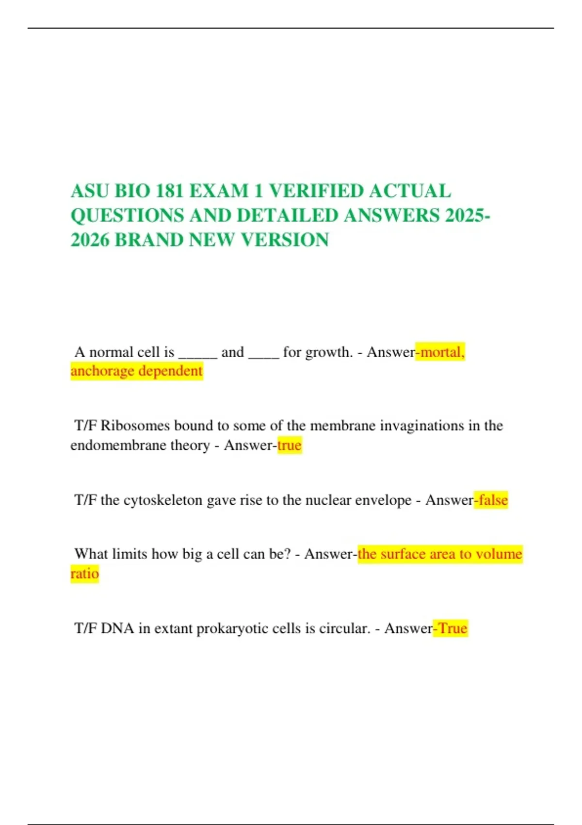 ASU BIO 181 EXAM 1 VERIFIED ACTUAL QUESTIONS AND DETAILED ANSWERS BRAND NEW VERSIONASU BIO 181 EXAM 1 VERIFIED ACTUAL QUESTIONS AND DETAILED ANSWERS BRAND NEW VERSIONASU BIO 181 EXAM 1 VERIFIED ACTUAL QUESTIONS AND DETAILED ANSWERS BRAND NEW VERSION