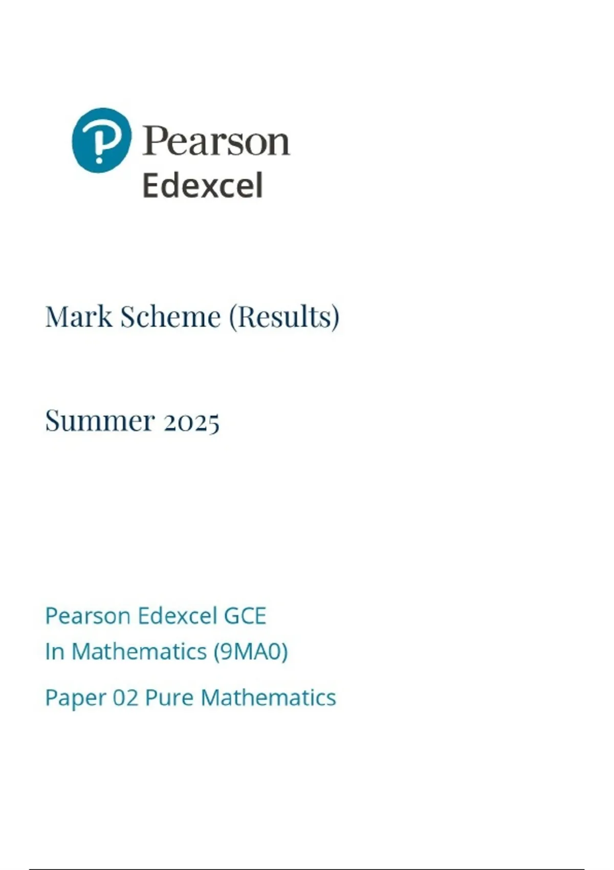 EDEXCEL A LEVELPURE MATHEMATICS PAPER 2 JUNE 2025 MARK SCHEME