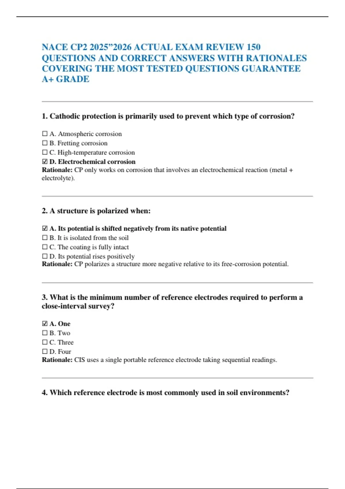 QUESTIONS AND CORRECT ANSWERS WITH RATIONALES