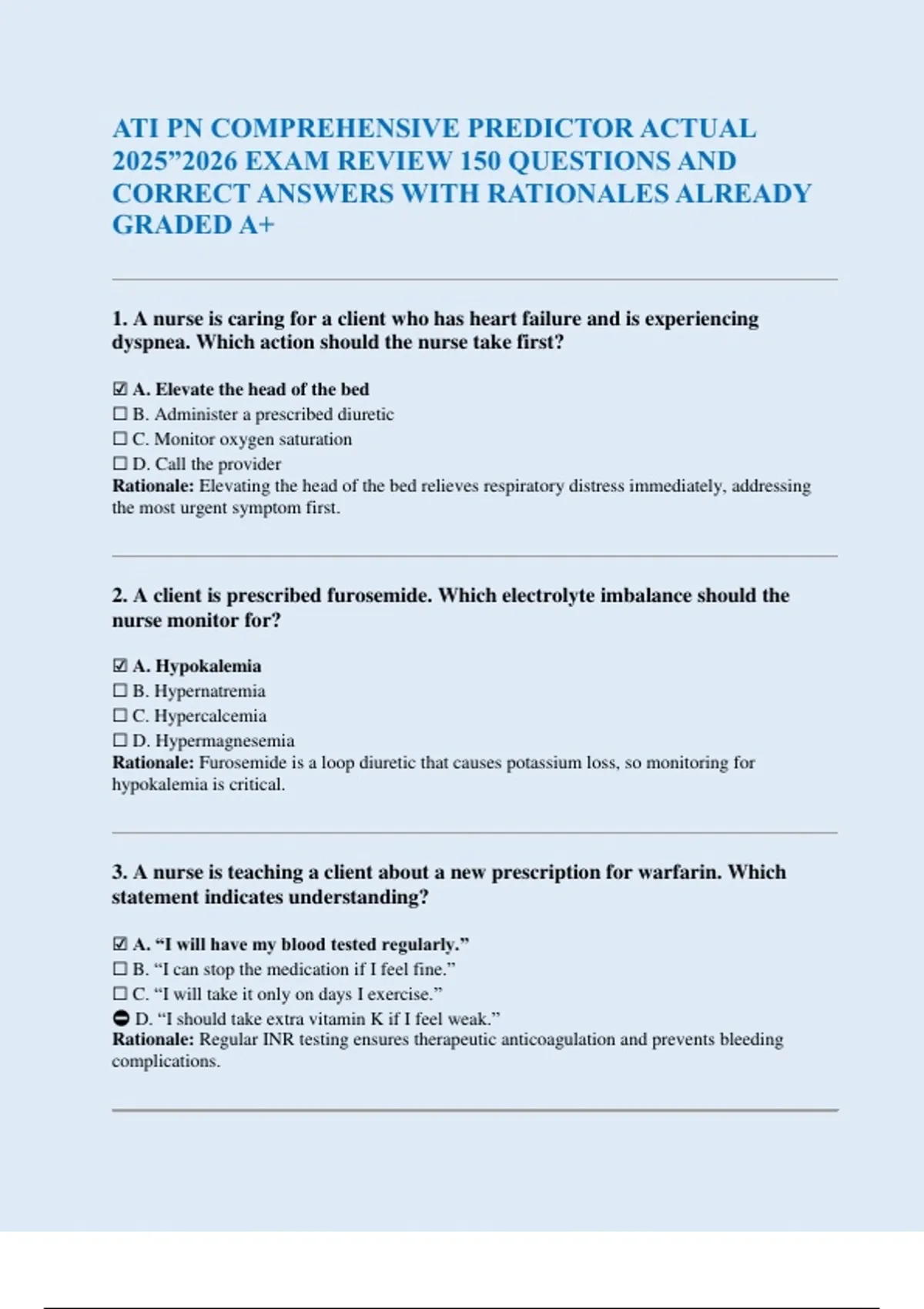 1. A nurse is caring for a client who has heart failure and is experiencing