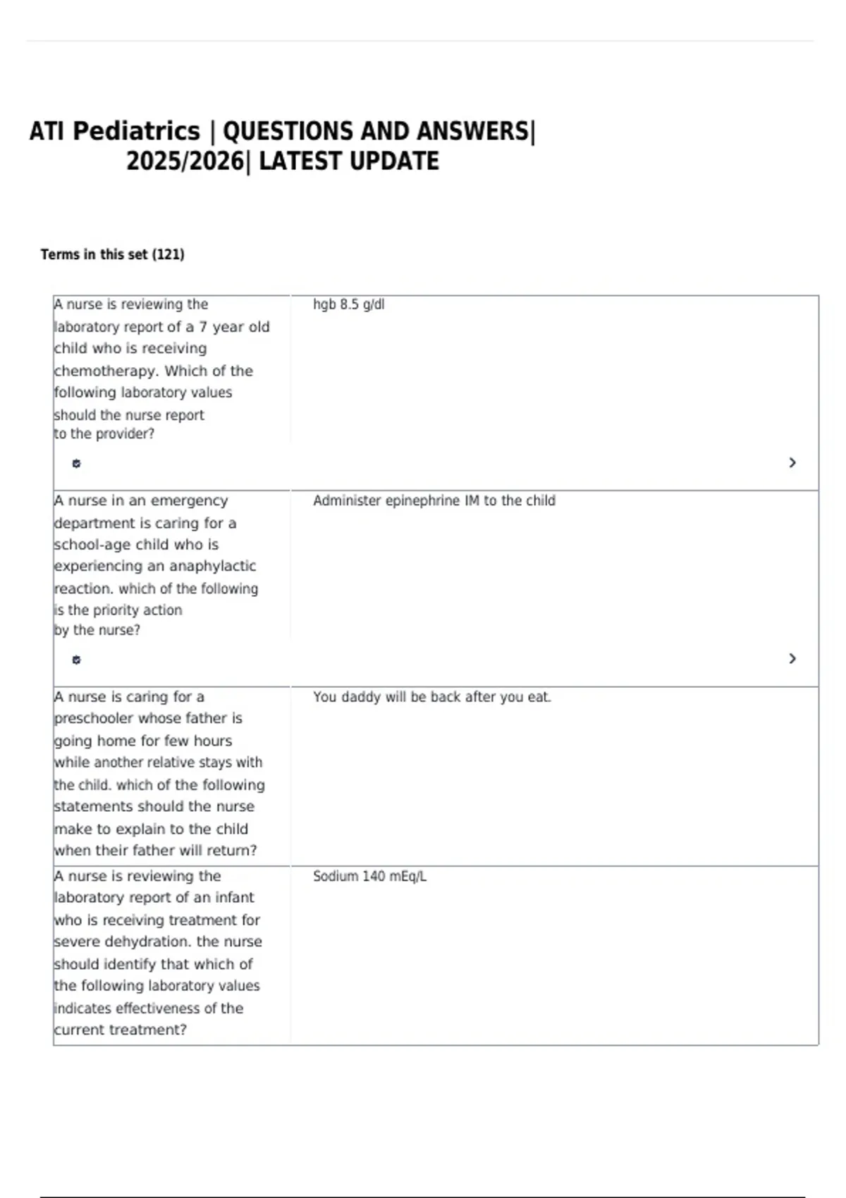 ATI Pediatrics | QUESTIONS AND ANSWERS|