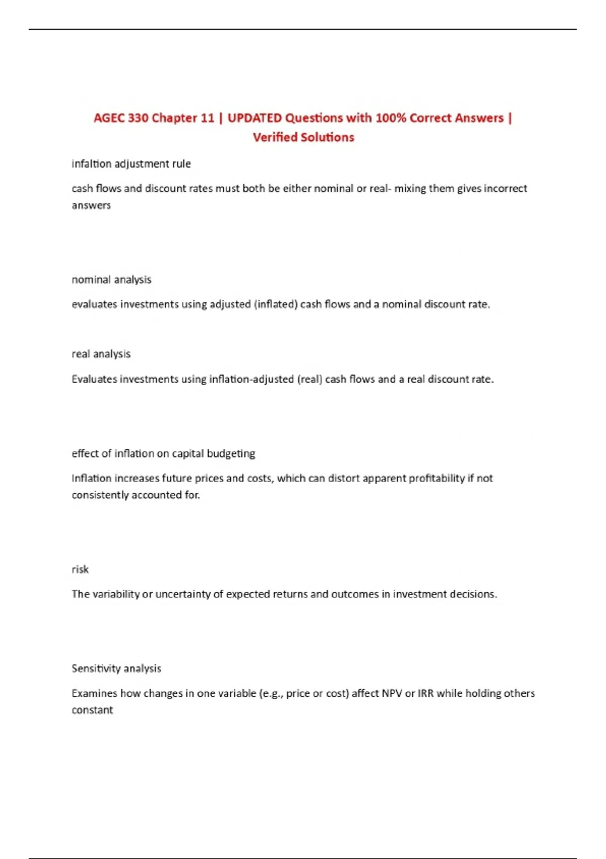 AGEC 330 Chapter 11 | UPDATED Questions with 100% Correct Answers | Verified Solutions