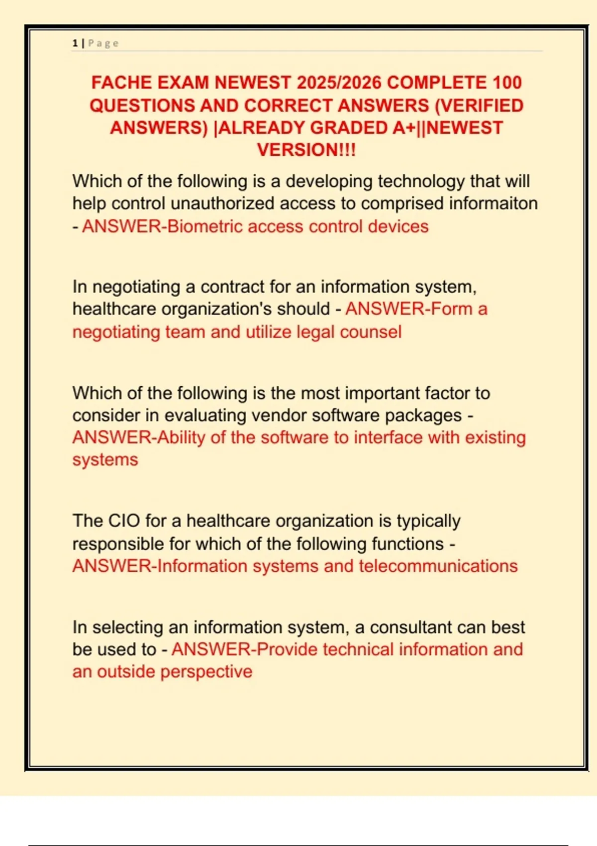 FACHE EXAM NEWEST 2025/2026 COMPLETE 100 QUESTIONS AND CORRECT ANSWERS (VERIFIED ANSWERS) |ALREADY GRADED A+||NEWEST VERSION!!!