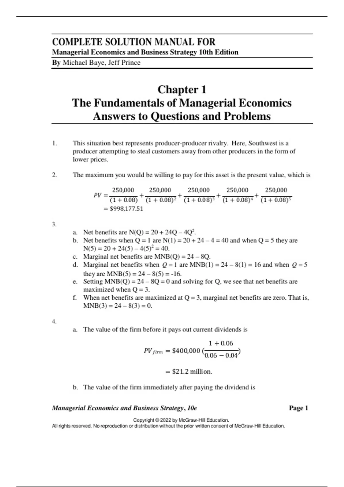Managerial Economics and Business Strategy, 10e Page 1