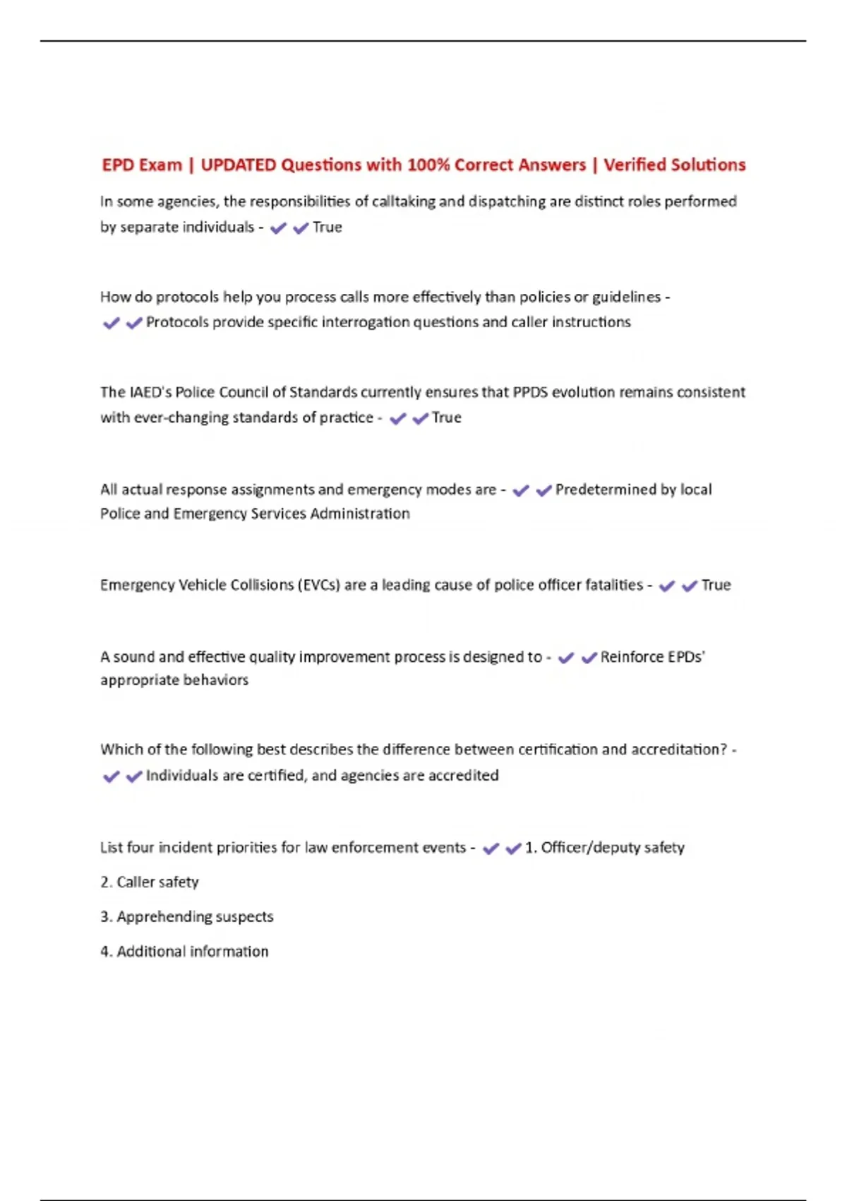 EPD Exam | UPDATED Questions with 100% Correct Answers | Verified Solutions