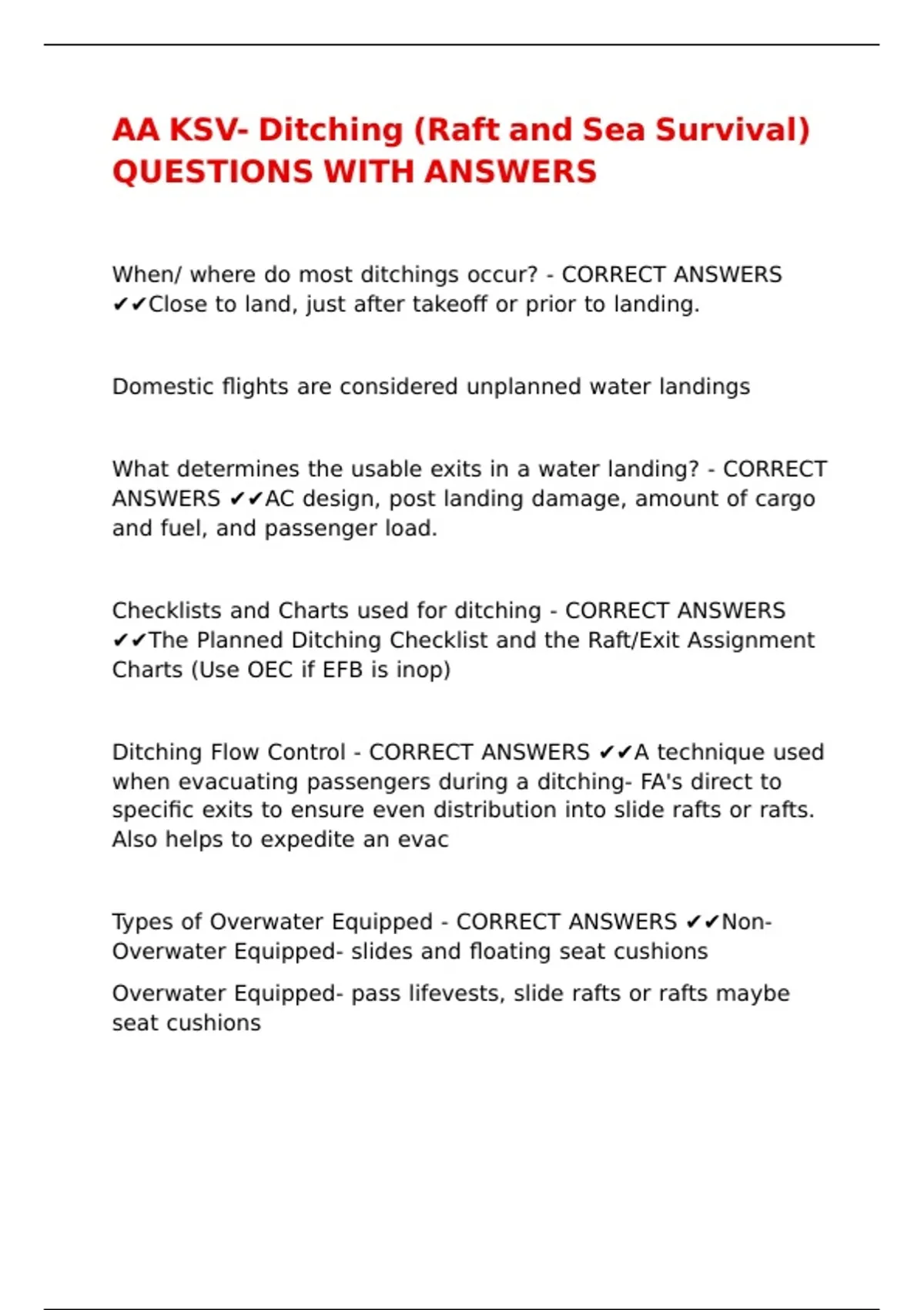 AA KSV- Ditching (Raft and Sea Survival) QUESTIONS WITH ANSWERS