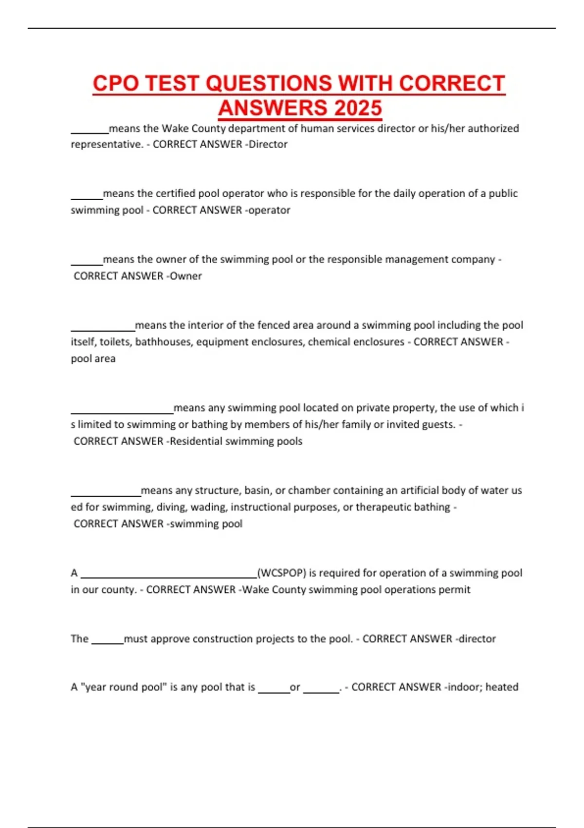 CPO TEST QUESTIONS WITH CORRECT ANSWERS 2025