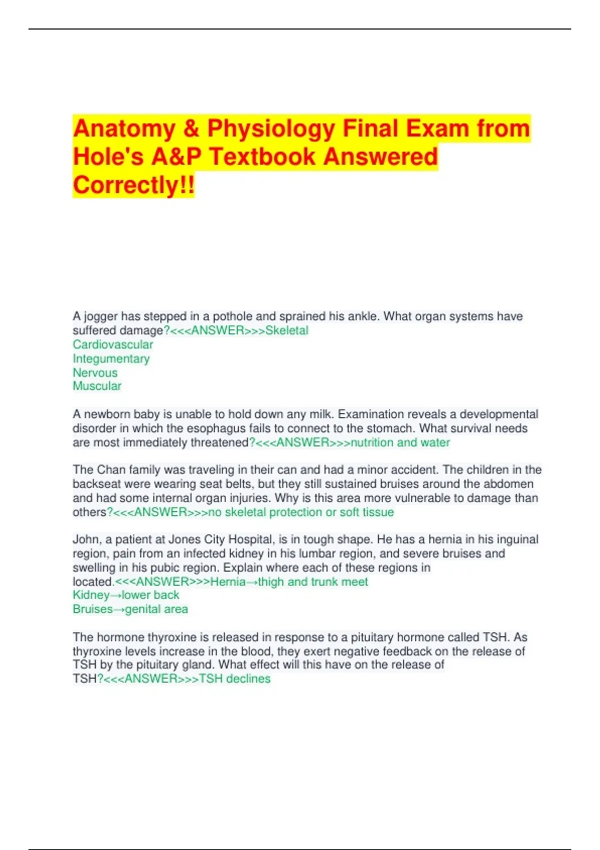 Hole's A&P Textbook Answered
