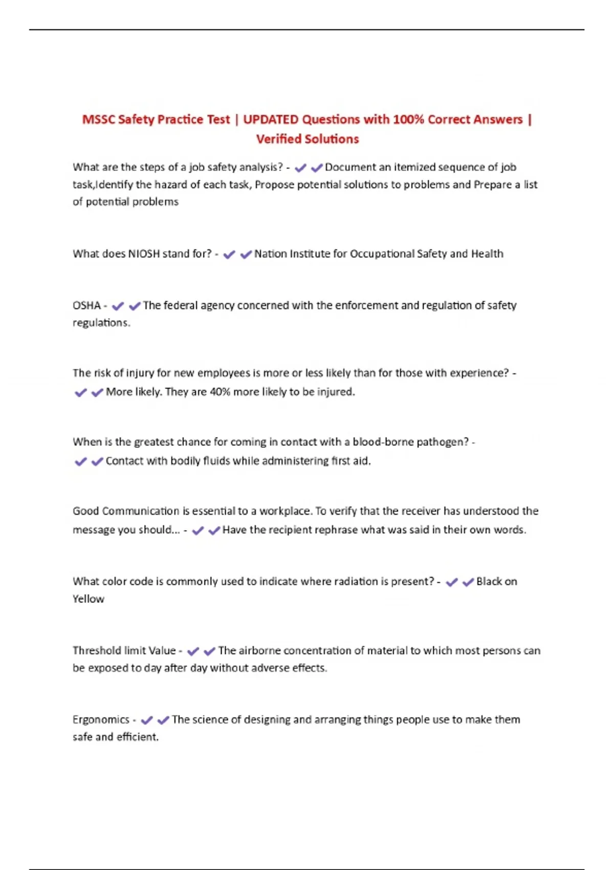 MSSC Safety Practice Test | UPDATED Questions with 100% Correct Answers | Verified Solutions