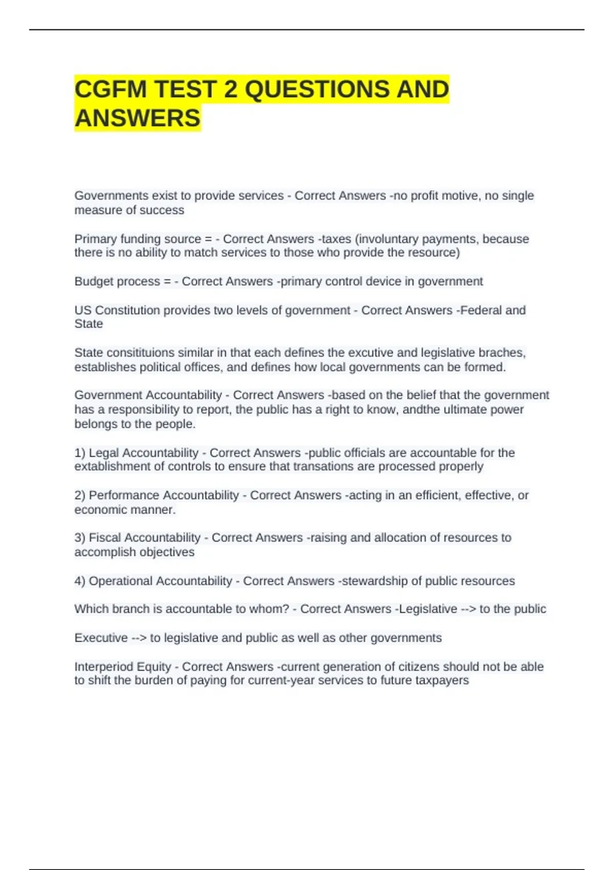 CGFM TEST 2 QUESTIONS AND ANSWERS