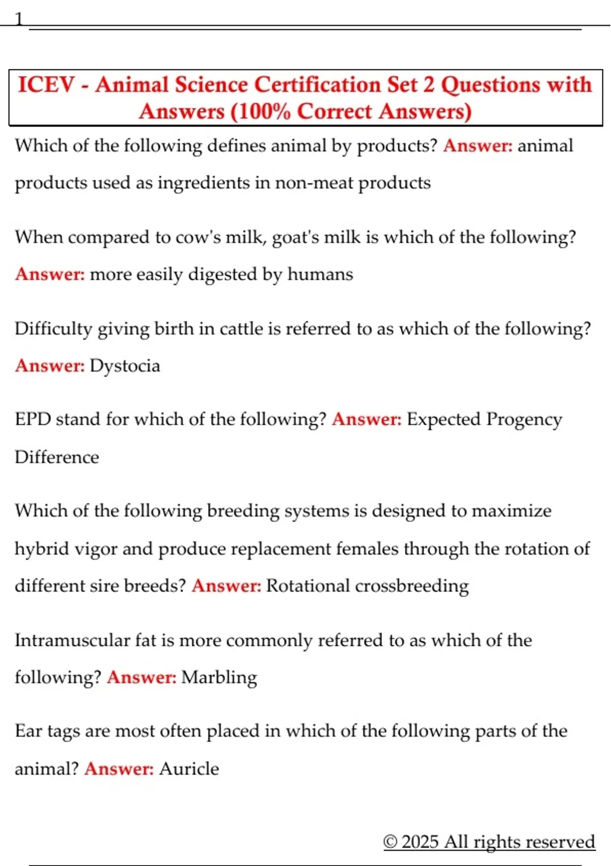 ICEV - Animal Science Certification Set 2 Questions with Answers (100% Correct Answers)
