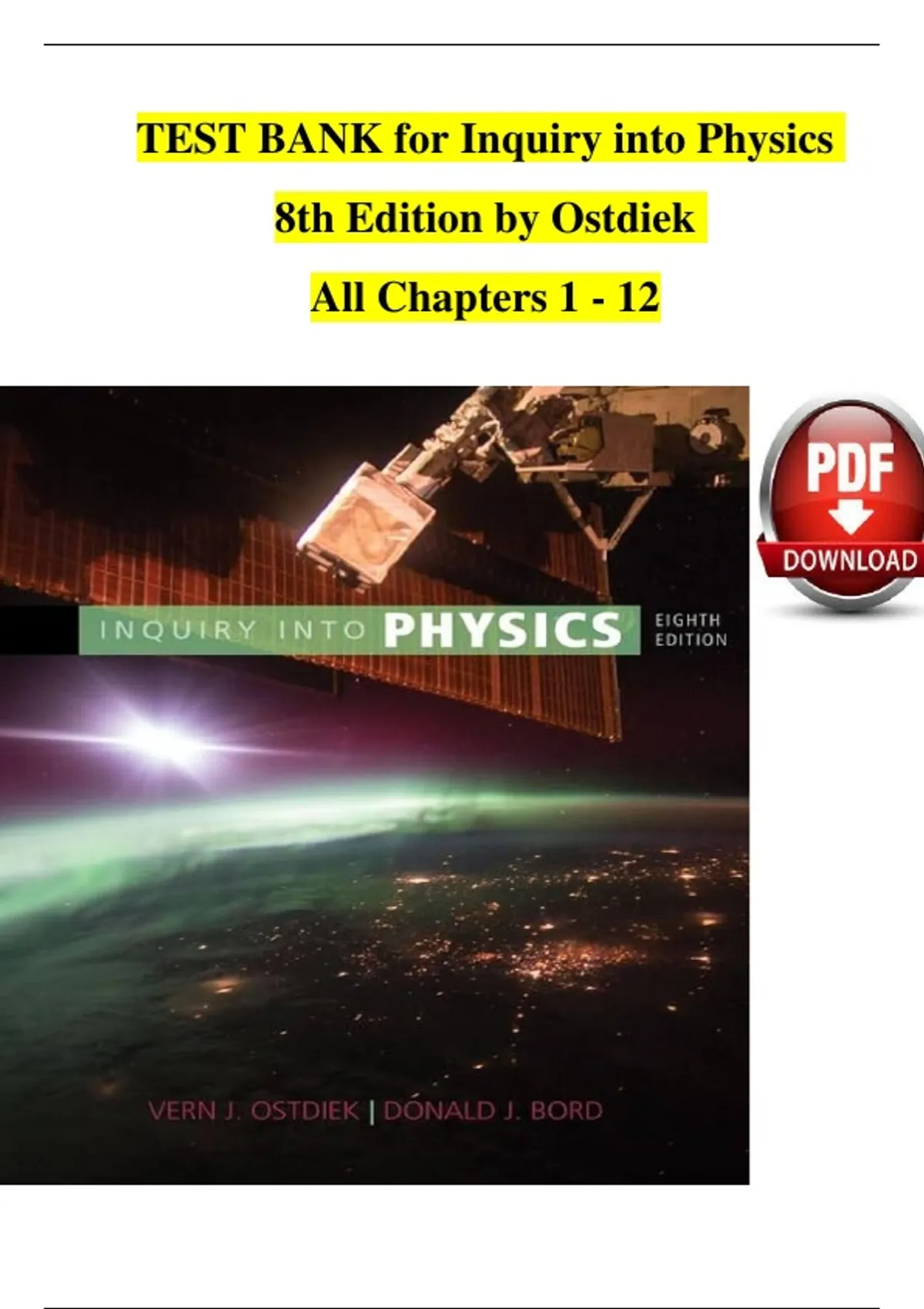 TEST BANK for Inquiry into Physics 8th Edition by Ostdiek All Chapters 1 - 12 TEST BANK for Inquiry into Physics 8th Edition by Ostdiek All Chapters 1 - 12 TEST BANK for Inquiry into Physics 8th Edition by Ostdiek All Chapters 1 - 12