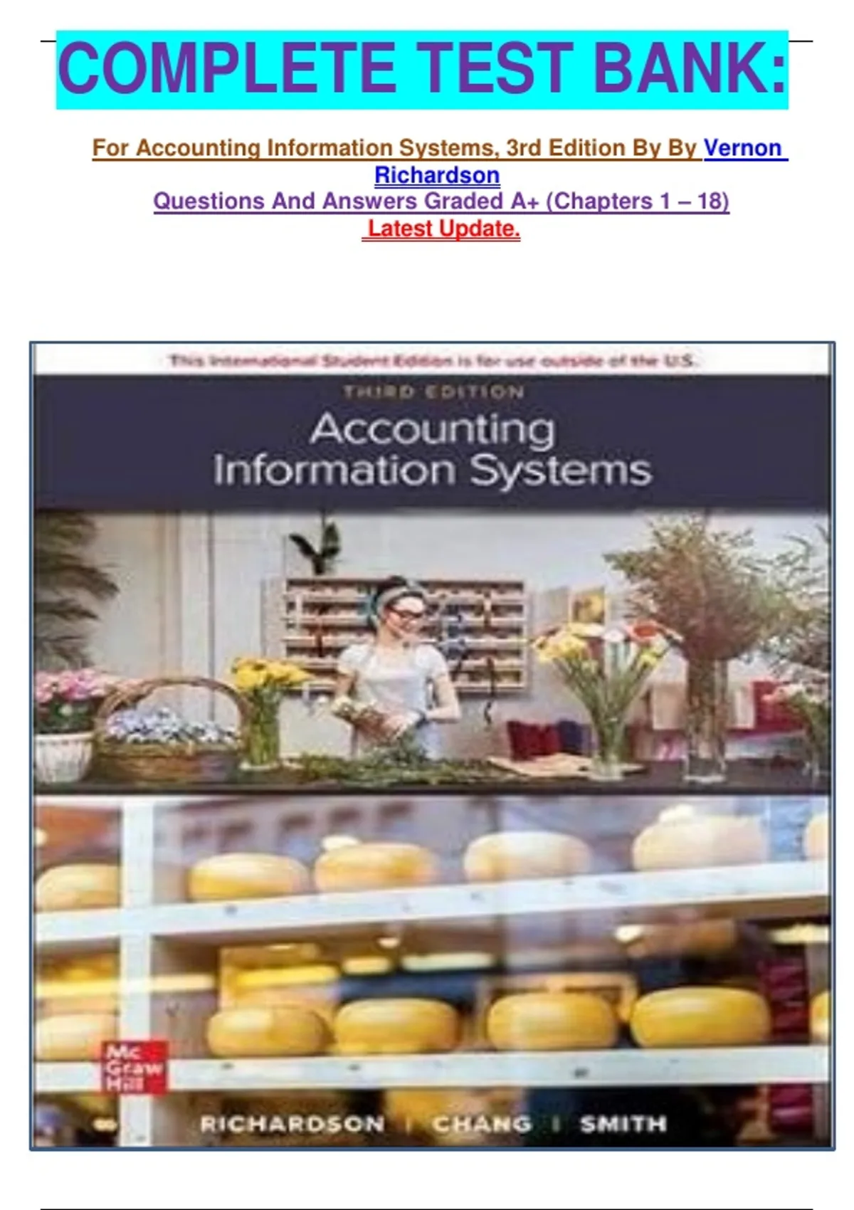 COMPLETE TEST BANK: For Accounting Information Systems, 3rd Edition By By Vernon Richardson Questions And Answers Graded A+ (Chapters 1 – 18) Latest Update.