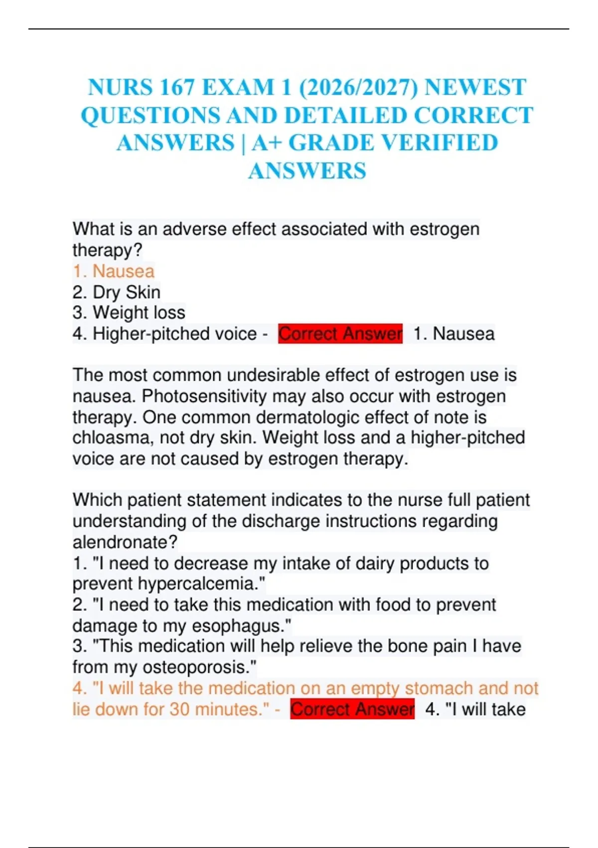 NURS 167 EXAM 1 (2026/2027) NEWEST