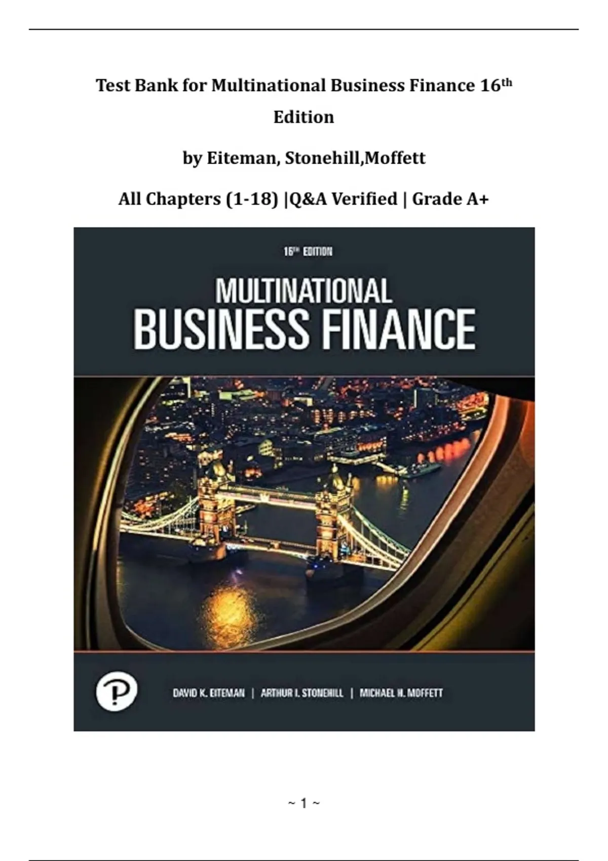 Multinational Business Finance – 16th Edition (Eiteman, Stonehill & Moffett) | Complete Test Bank (Ch. 1–18) | Verified Q&A | Grade A+