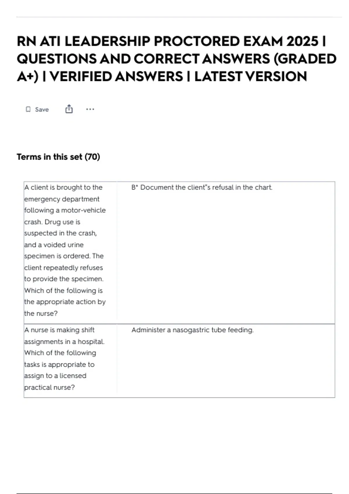RN ATI LEADERSHIP PROCTORED EXAM 2025 |
