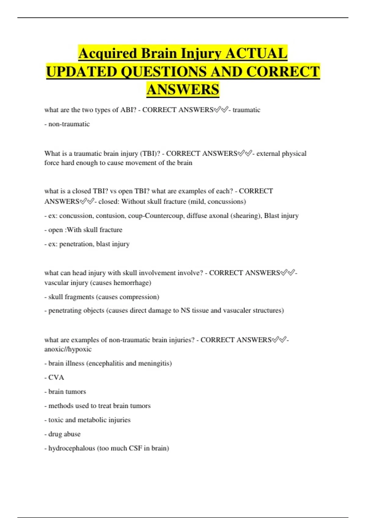 Acquired Brain Injury ACTUAL UPDATED QUESTIONS AND CORRECT ANSWERS