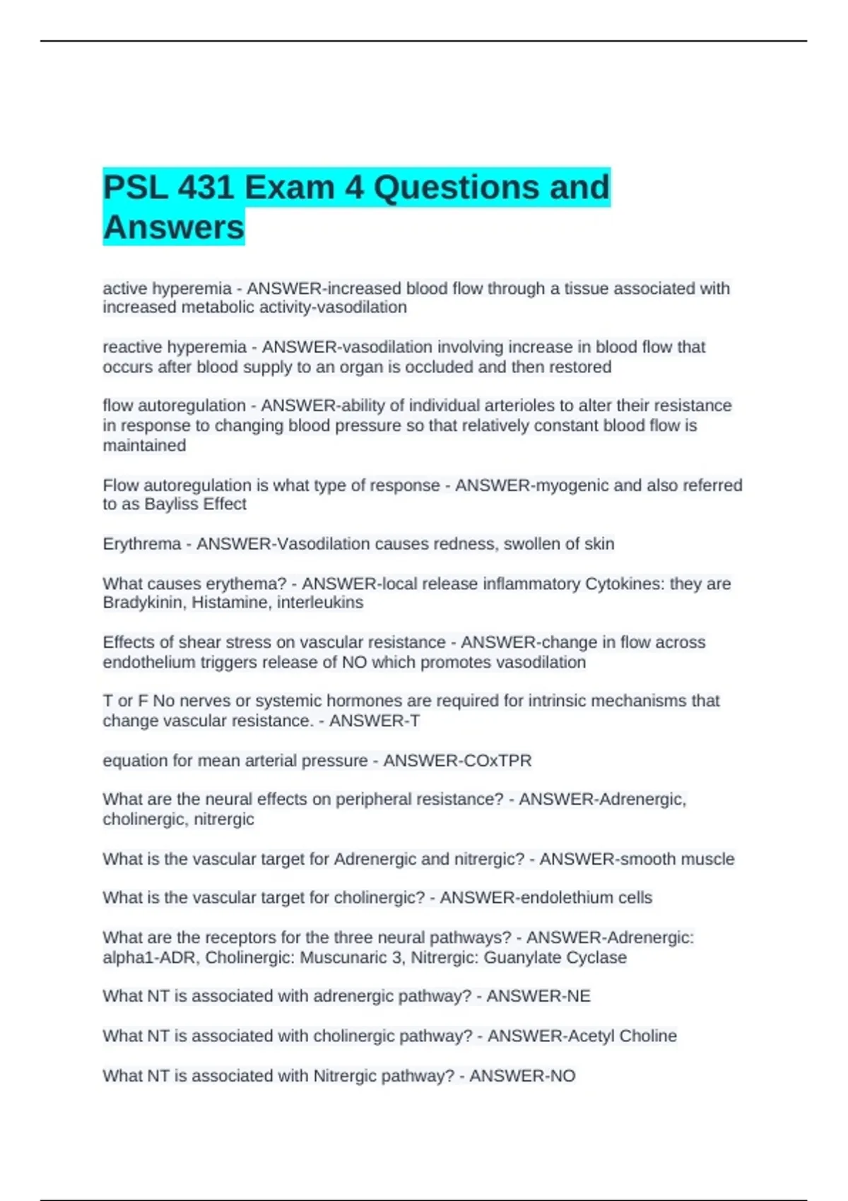 PSL 431 Exam 4 Questions and