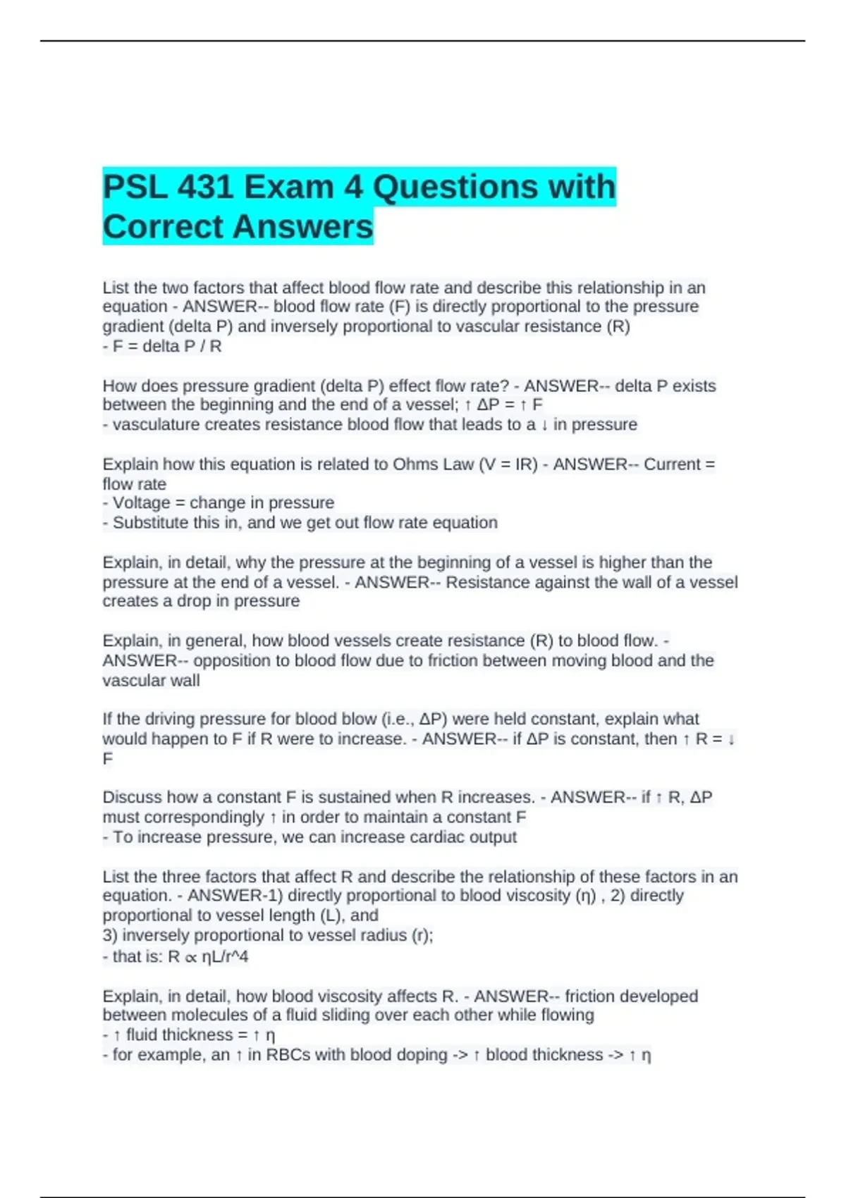 equation. - ANSWER-1) directly proportional to blood viscosity (η) , 2) directly