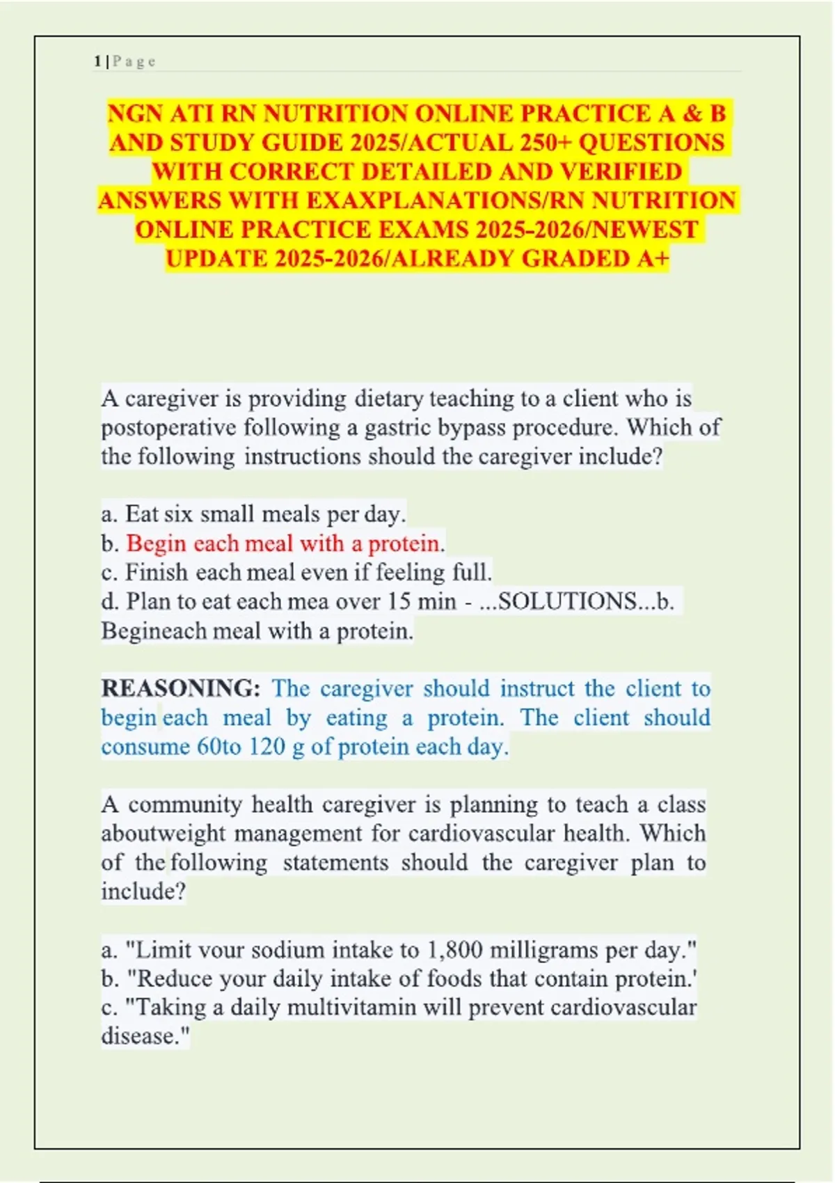NGN ATI RN Nutrition Online Practice A & B and Study Guide 2025/2026 |250+ Actual Questions with Correct, Detailed, and Verified Answers (A+ Graded, Newest Update)