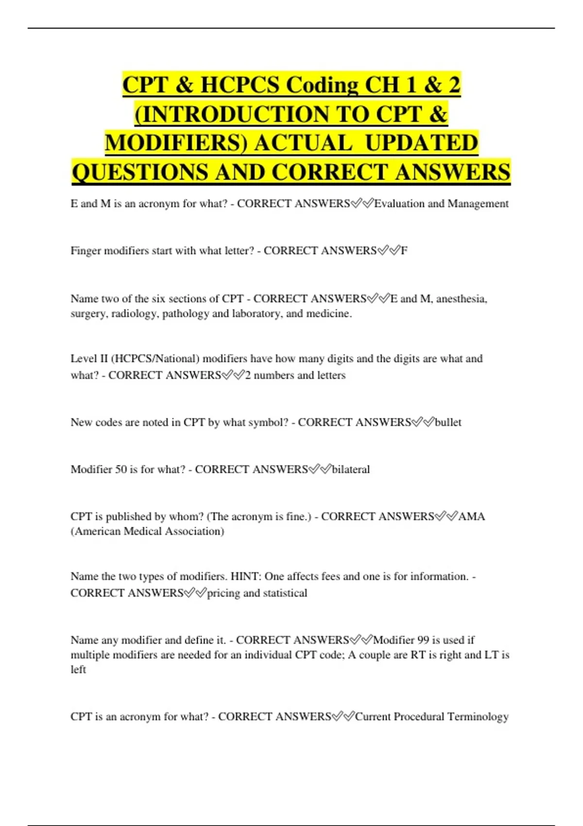 CPT is an acronym for what? - CORRECT ANSWERS✅✅Current Procedural Terminology