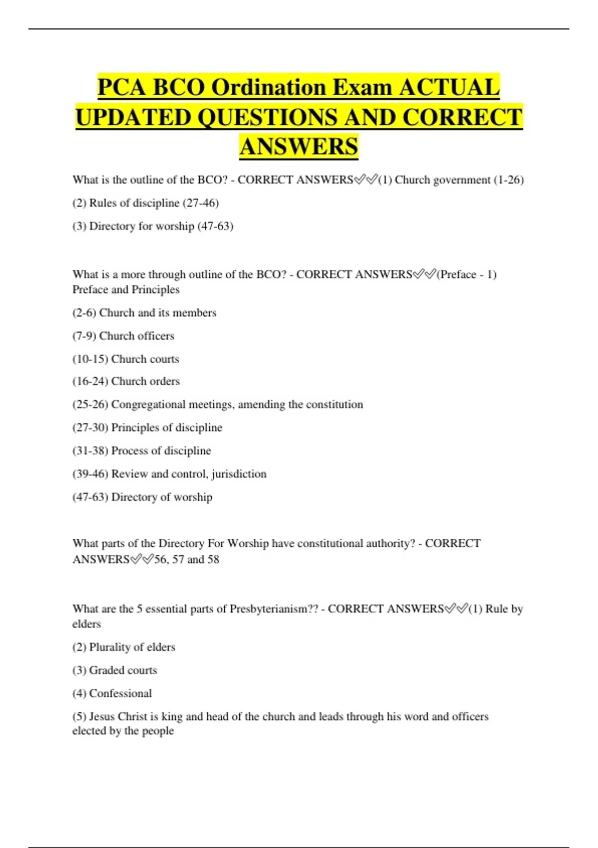 What are the 5 essential parts of Presbyterianism?? - CORRECT ANSWERS✅✅(1) Rule by