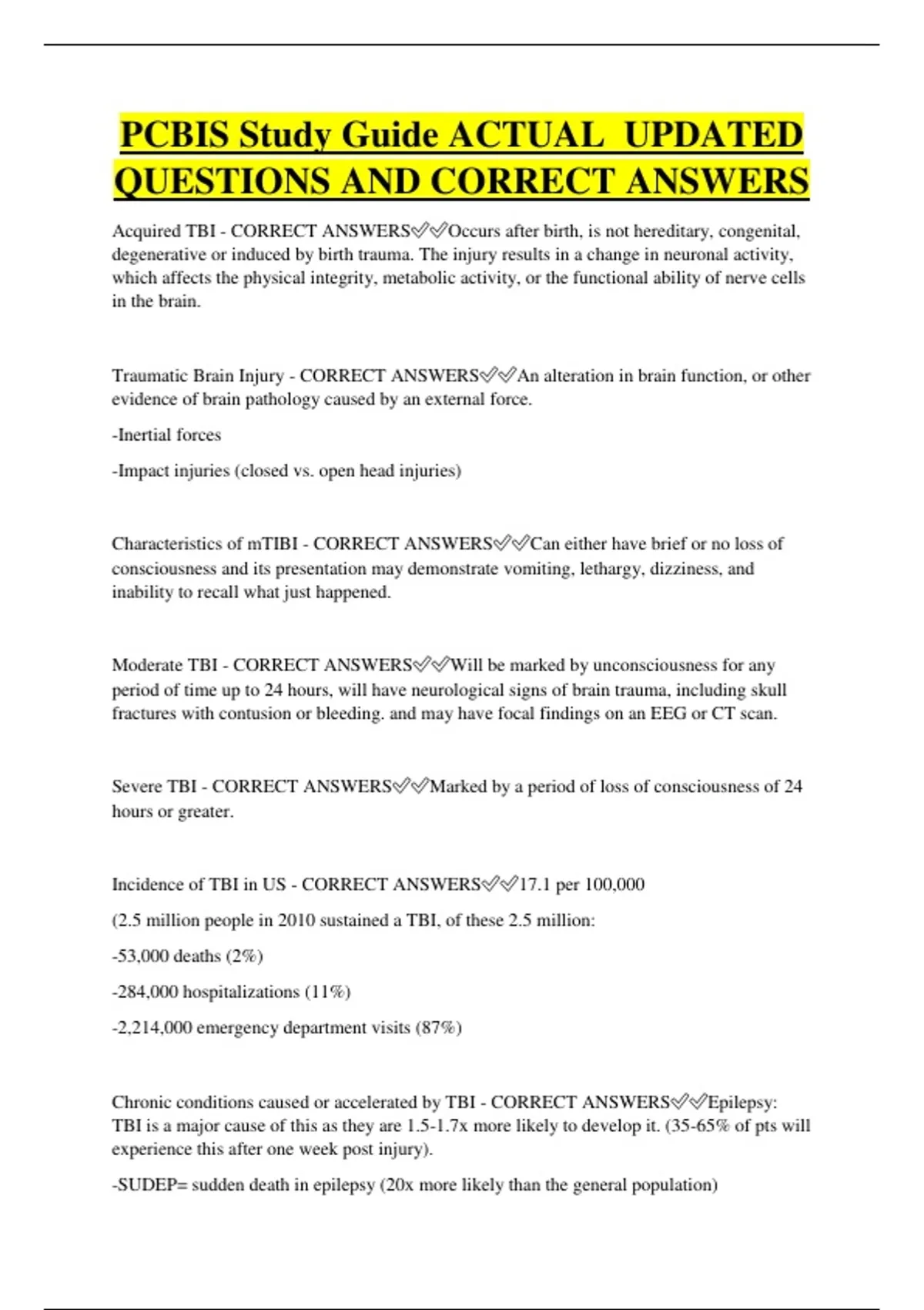 Incidence of TBI in US - CORRECT ANSWERS✅✅17.1 per 100,000