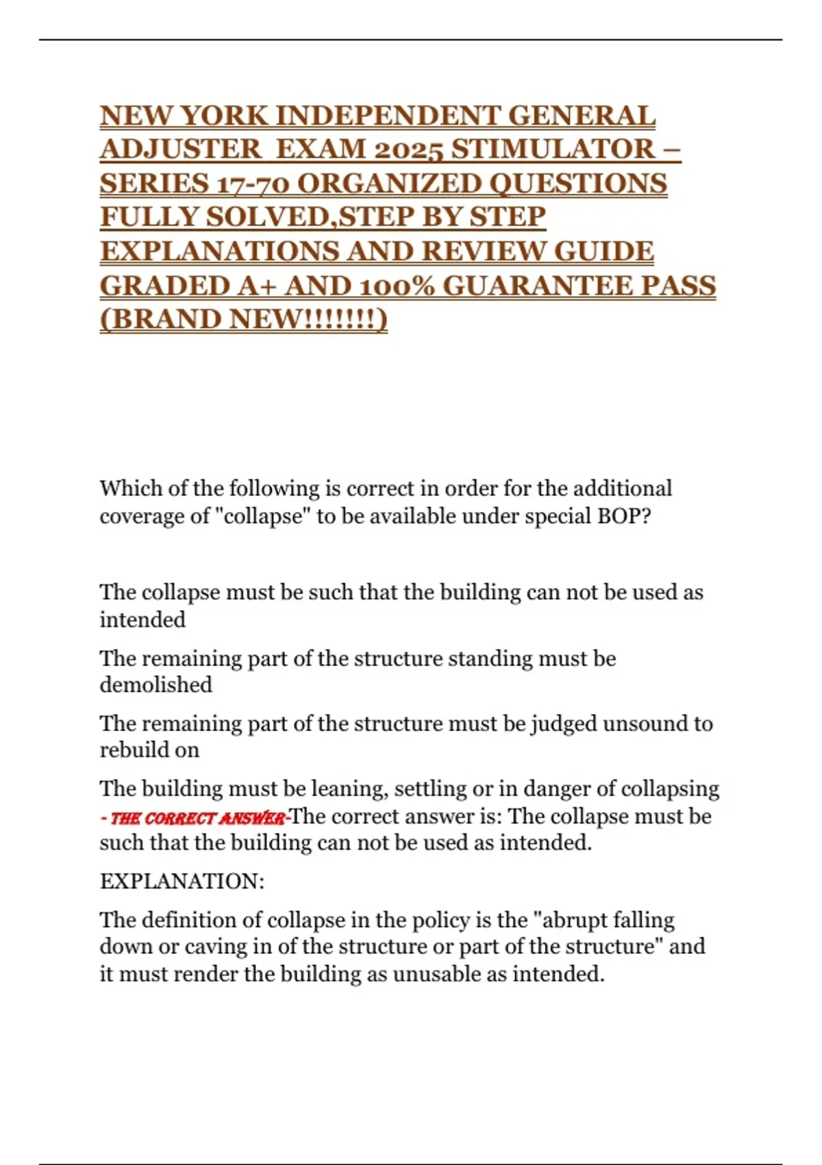 ADJUSTER EXAM 2025 STIMULATOR –