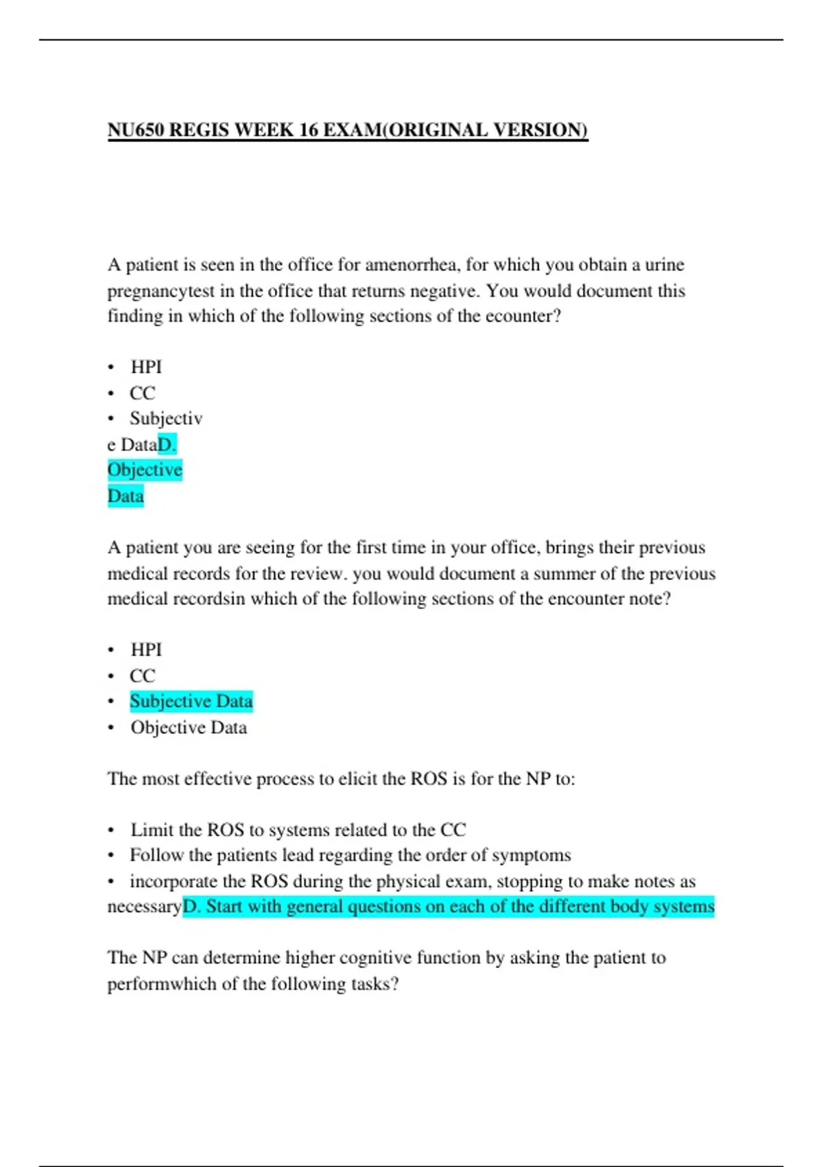 NU650 REGIS WEEK 16 EXAM(ORIGINAL VERSION)