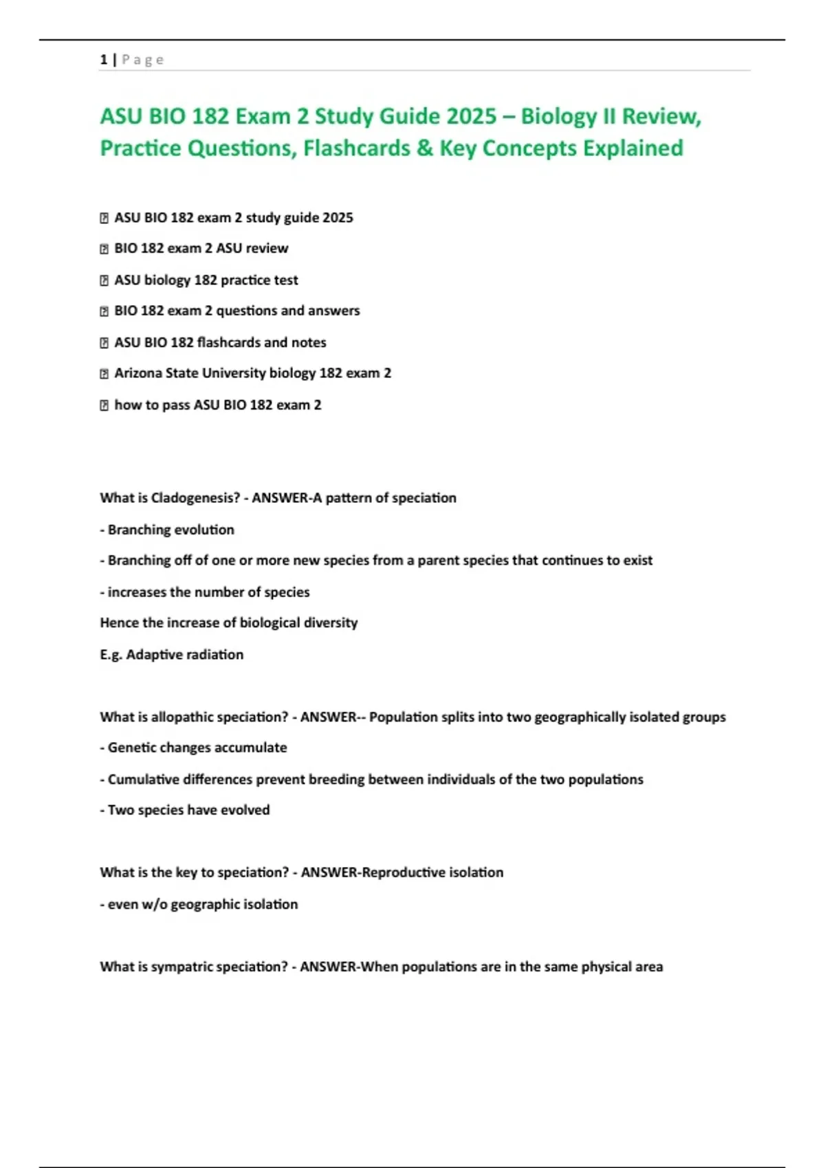 ASU BIO 182 Exam 2 Study Guide 2025 – Biology II Review, Practice Questions, Flashcards & Key Concepts Explained