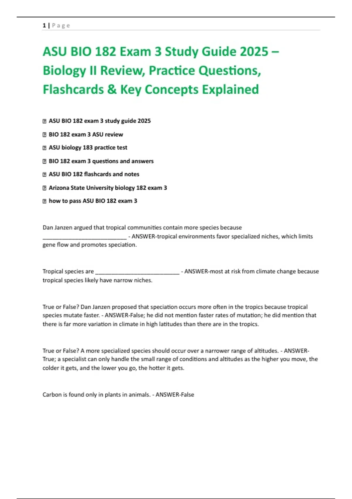 ASU BIO 182 Exam 3 Study Guide 2025 –