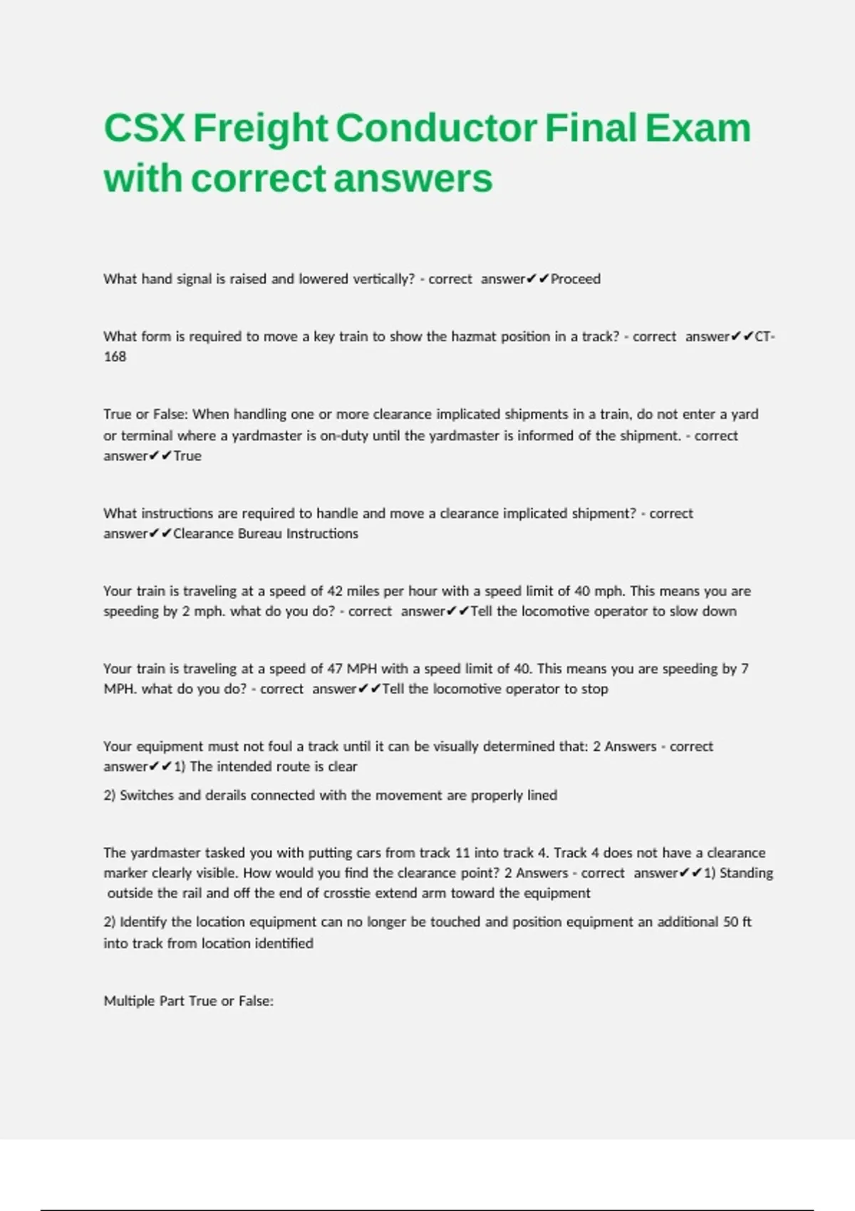 CSX Freight Conductor Final Exam |||\\\ |||\\\ |||\\\ |||\\\ |||\\\
