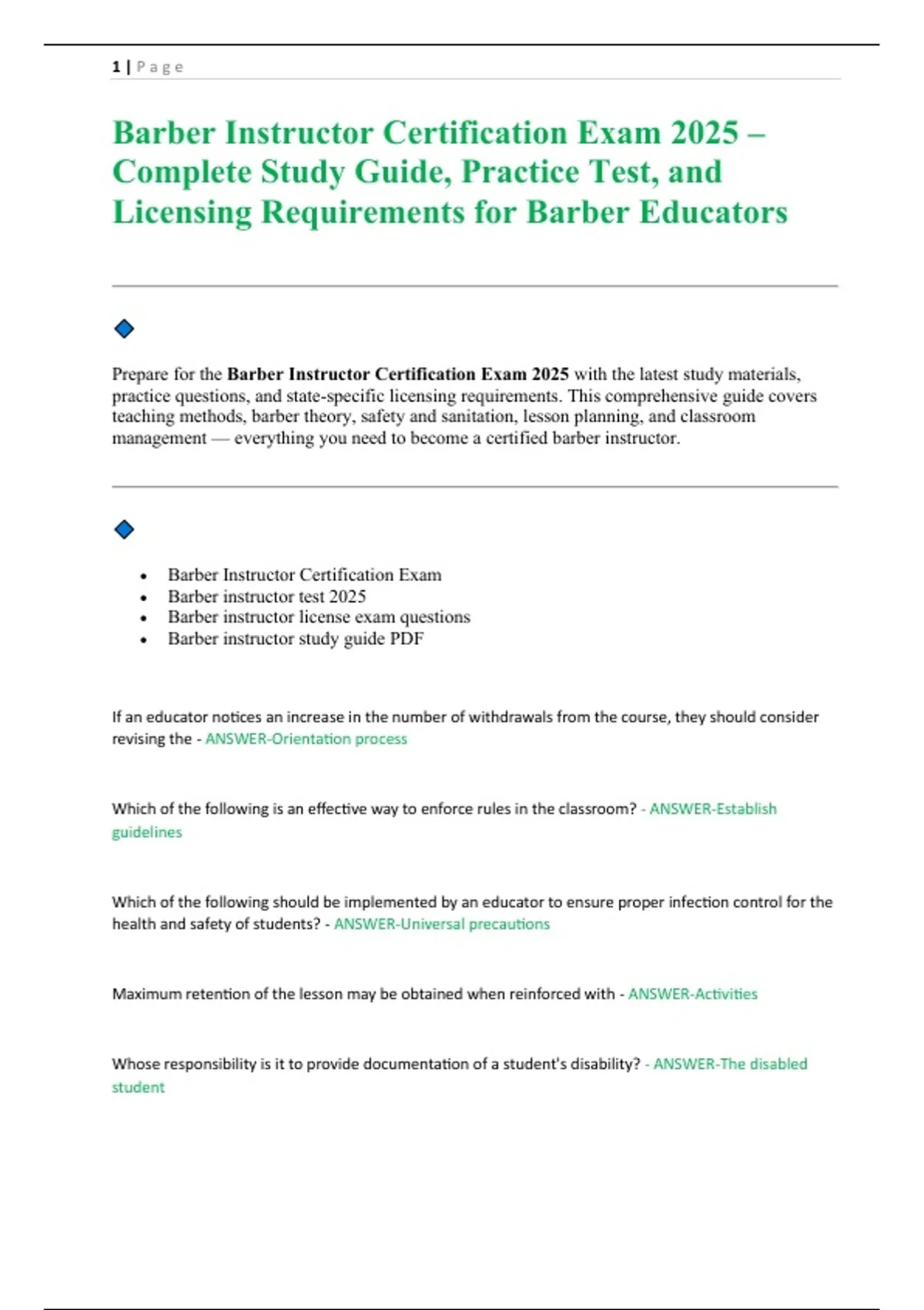 Prepare for the Barber Instructor Certification Exam 2025 with the latest study materials,