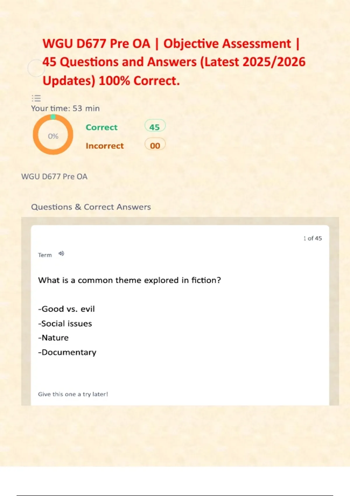 WGU D677 Pre OA | Objective Assessment | 45 Questions and Answers (Latest 2025/2026 Updates) 100% Correct.